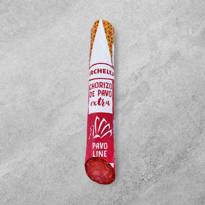 El chorizo de pavo es una alternativa más ligera al chorizo tradicional. Hecho de carne de pavo magra y especias, ofrece un sabor sabroso y ahumado, ideal para sandwiches, ensaladas y tapas saludables.