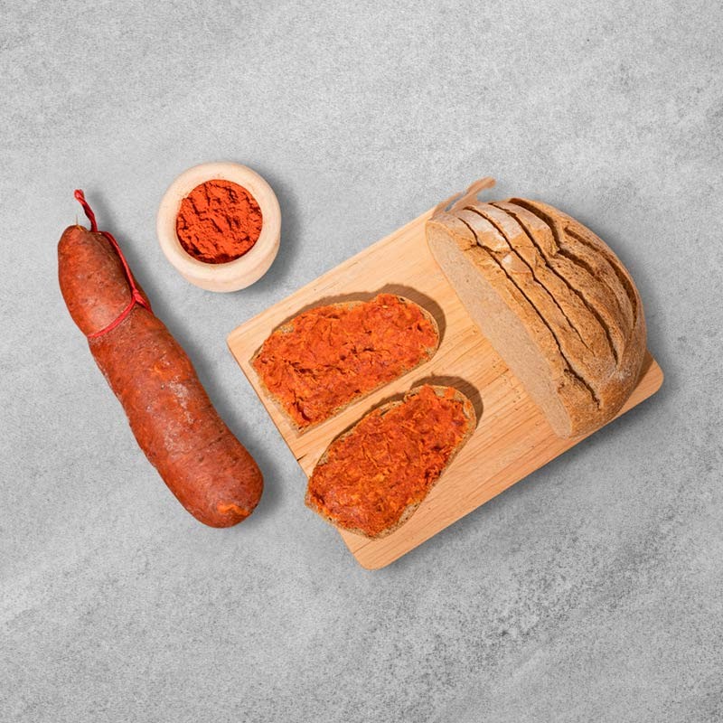 La sobrasada mallorquina es un embutido tradicional, elaborado con carne de cerdo, pimentón y especias. Su textura untuosa y sabor intenso la convierten en un manjar ideal para untar o acompañar.
